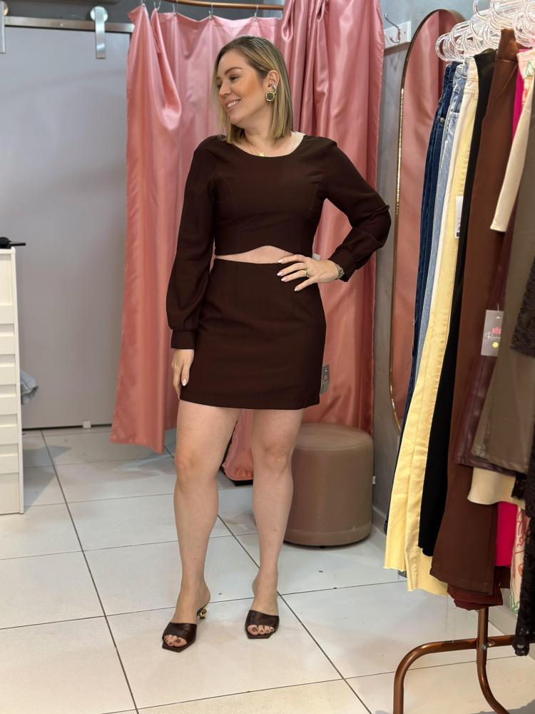 CONJUNTO SAIA SHORT E CROPPED CAFÉ